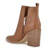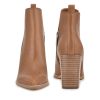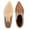 The Birds high heeled slip on bootie features a western inspired pointed toe and mid-height block heel. The tulip style opening, pull tab and side zipper allow for easy on and off access.
