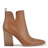 The Birds high heeled slip on bootie features a western inspired pointed toe and mid-height block heel. The tulip style opening, pull tab and side zipper allow for easy on and off access.